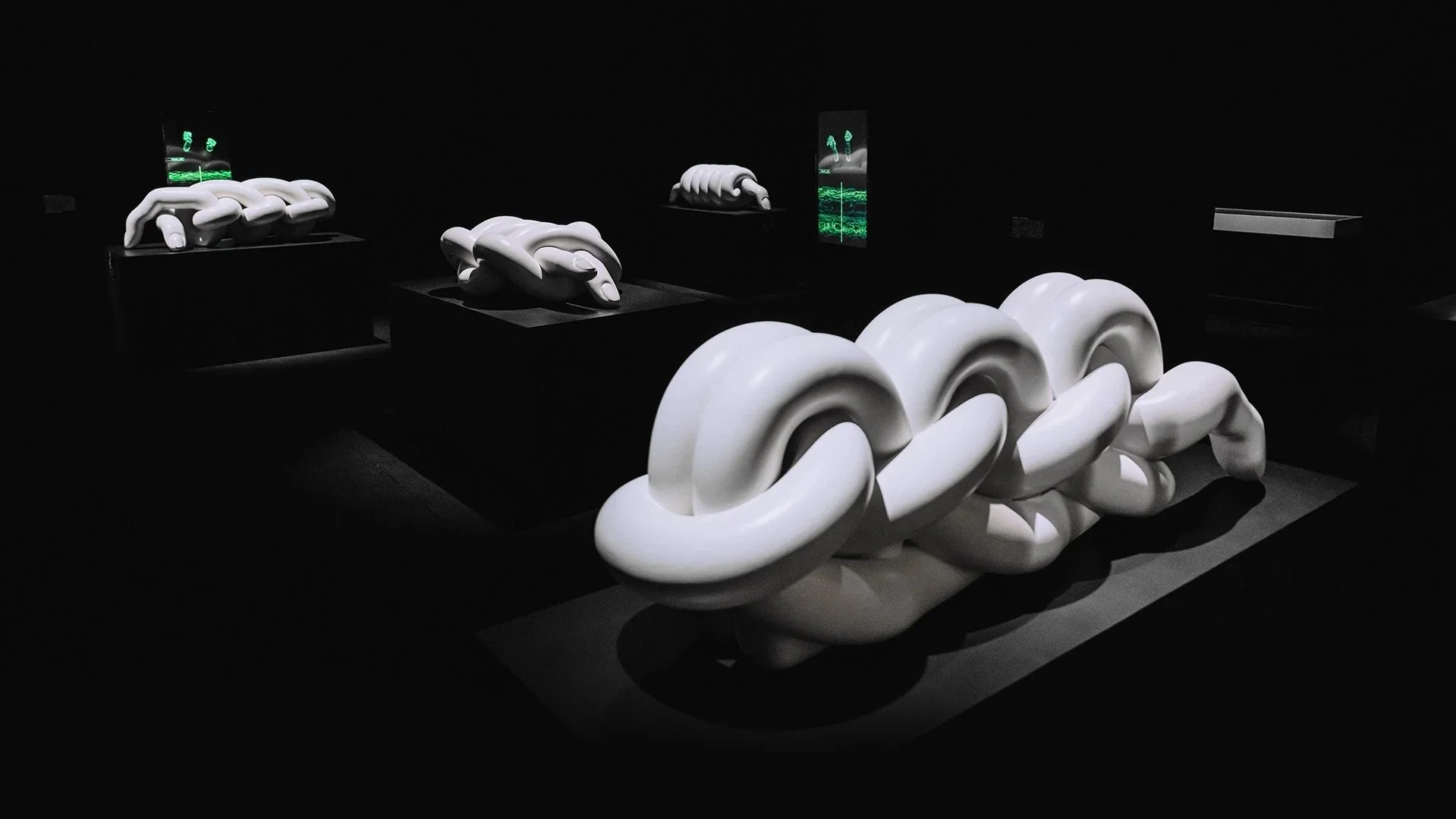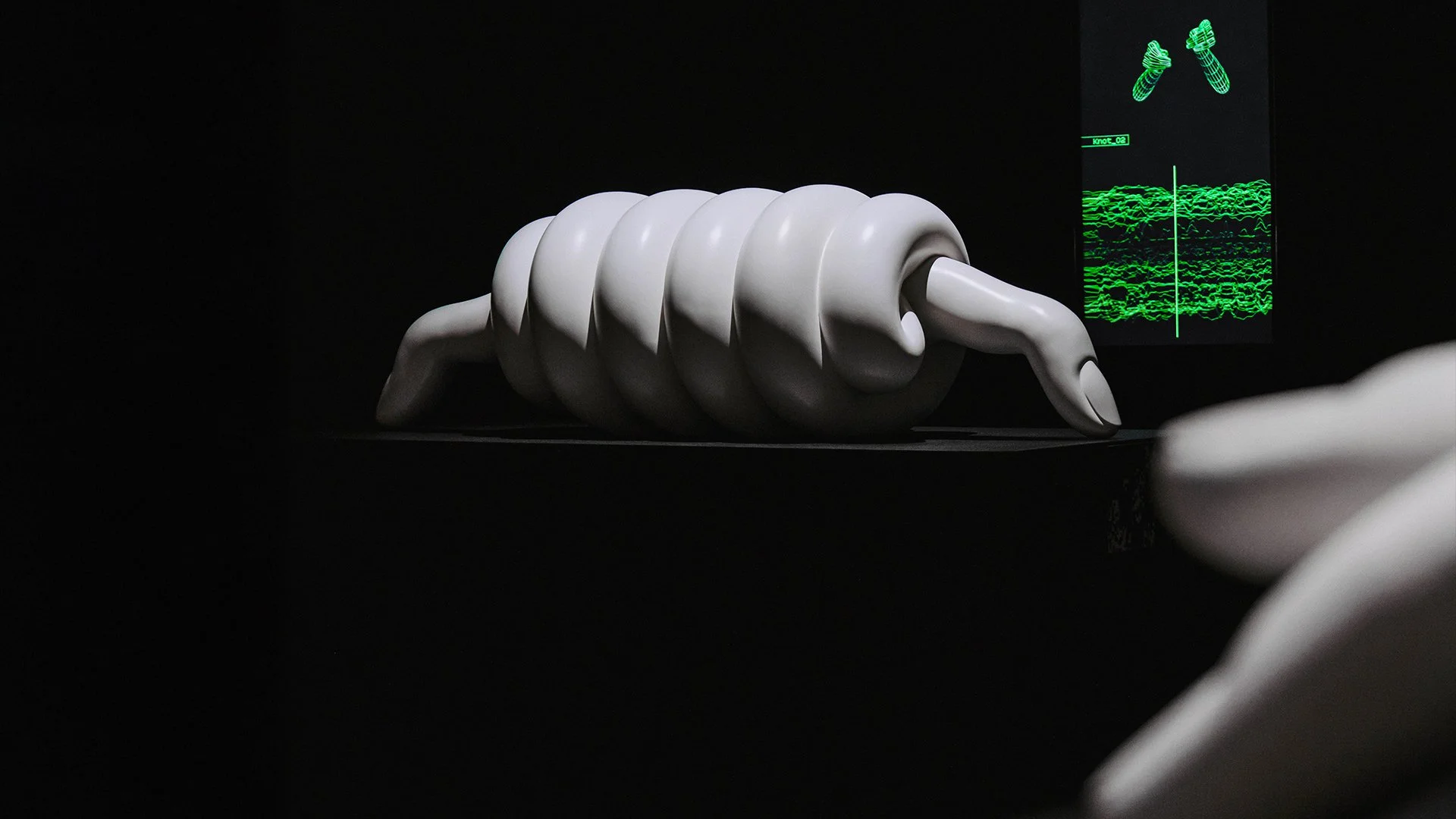 Textile gesture into sound through sculptural, knotted-finger forms where tool and material converge. Each piece activates a four-channel musical composition accessible via mobile devices and wireless headphones.During her residency at Meta Reality Labs Research, Muñoz used motion-capture gloves to record the pressures, twists, and micro-tensions of weaving.